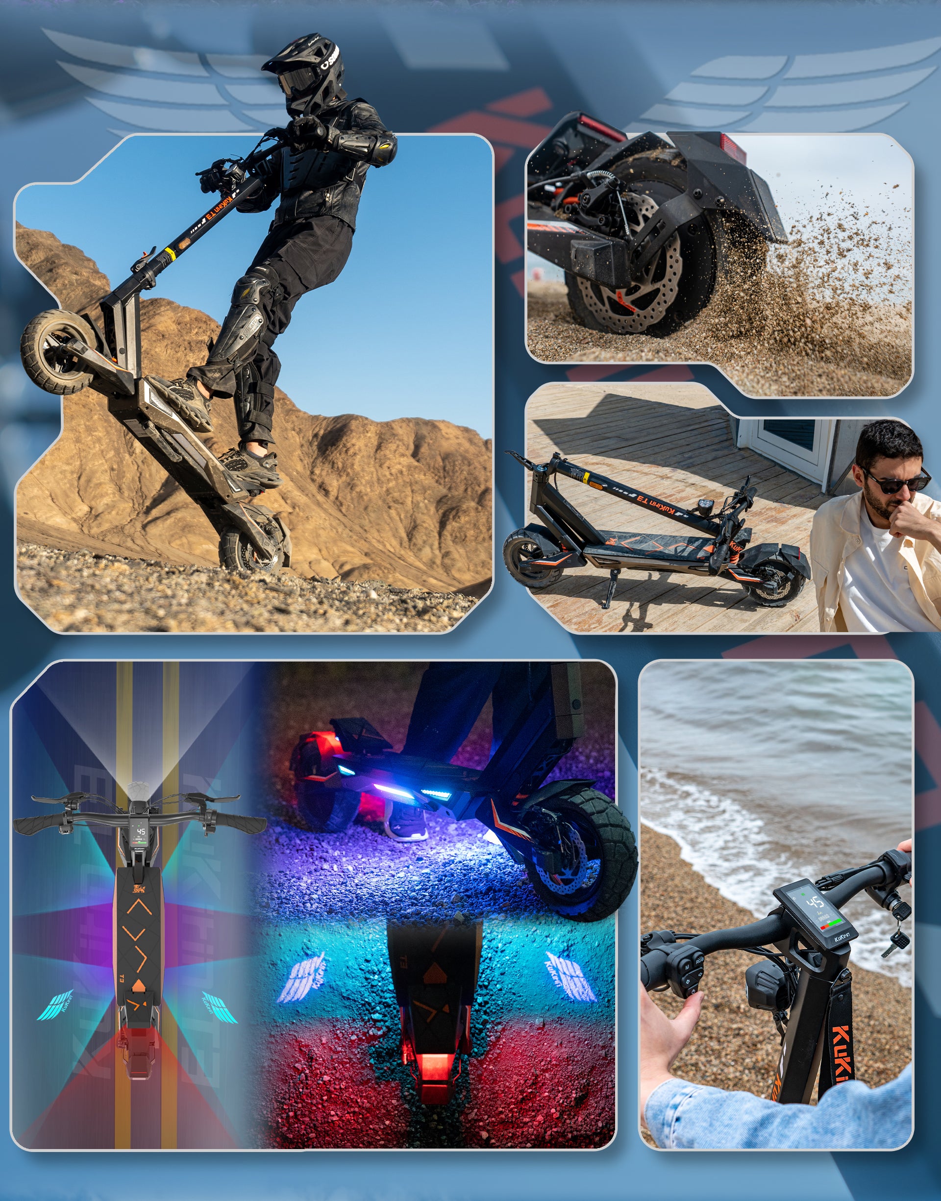 2025 New KUKIRIN T3 model is designed with 15.6Ah battery in the electric scooter supports up to 58 km of riding range pre-charge, 45kph max speed. Dual disc brakes and shock absorption make the electric scooter for adults more comfortable and safer when riding in various road conditions.
